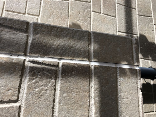 外壁材との目地に打っているコーキングにひび割れ・隙間が見られます。