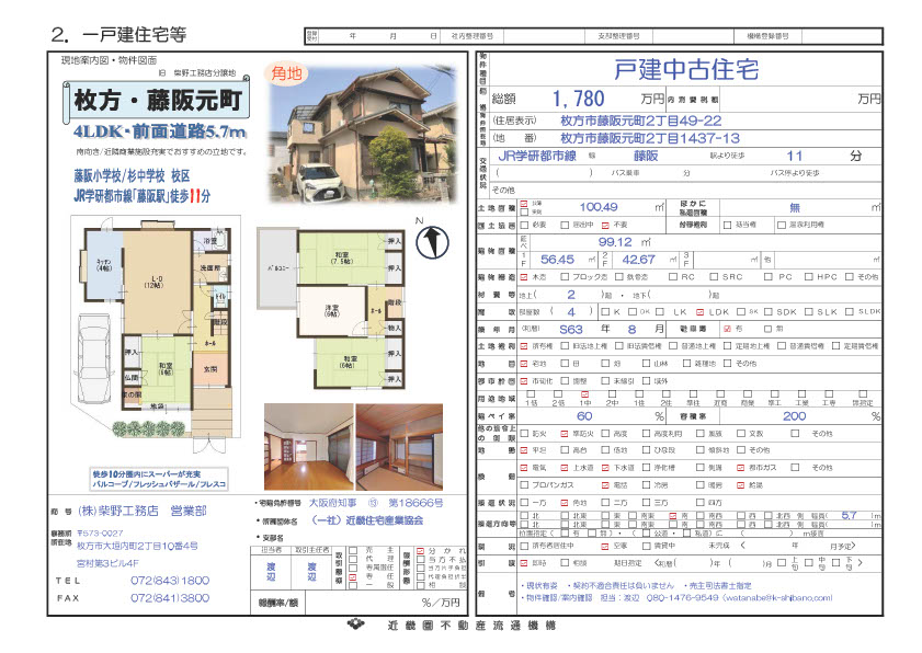 1780万円(土地・建物)