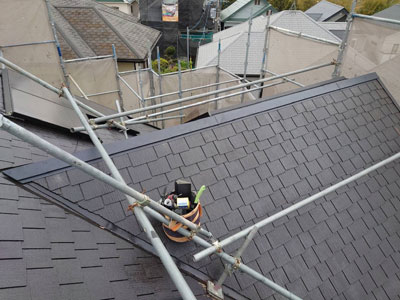 屋根の塗装も終わり板金の修理も行います。