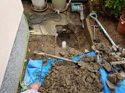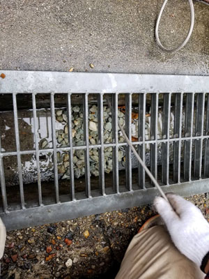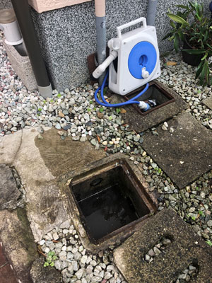 庭に敷いている小石などが流れて配管に詰まっていたので