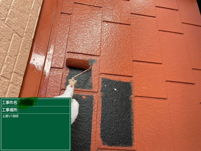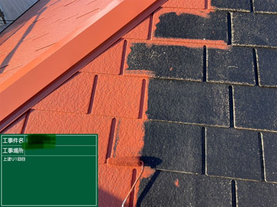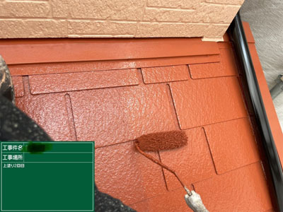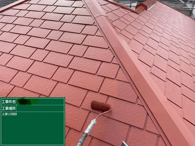 屋根の下塗りも完了し、中塗り、上塗りを行なっていきます。