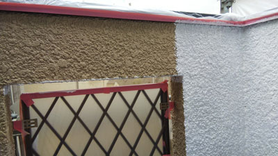 屋根塗装も終わり壁の塗装を開始していきます。