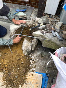 枚方 M様邸門柱等を解体。インターホンは再利用します。