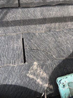 年数が経ち、写真のように割れやヒビが多数あるため葺き替えをし、
