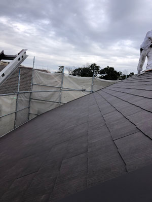 足場工事も終わり屋根の葺き替え工事となります。