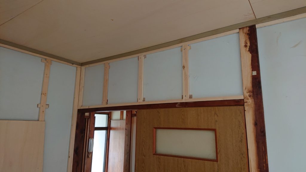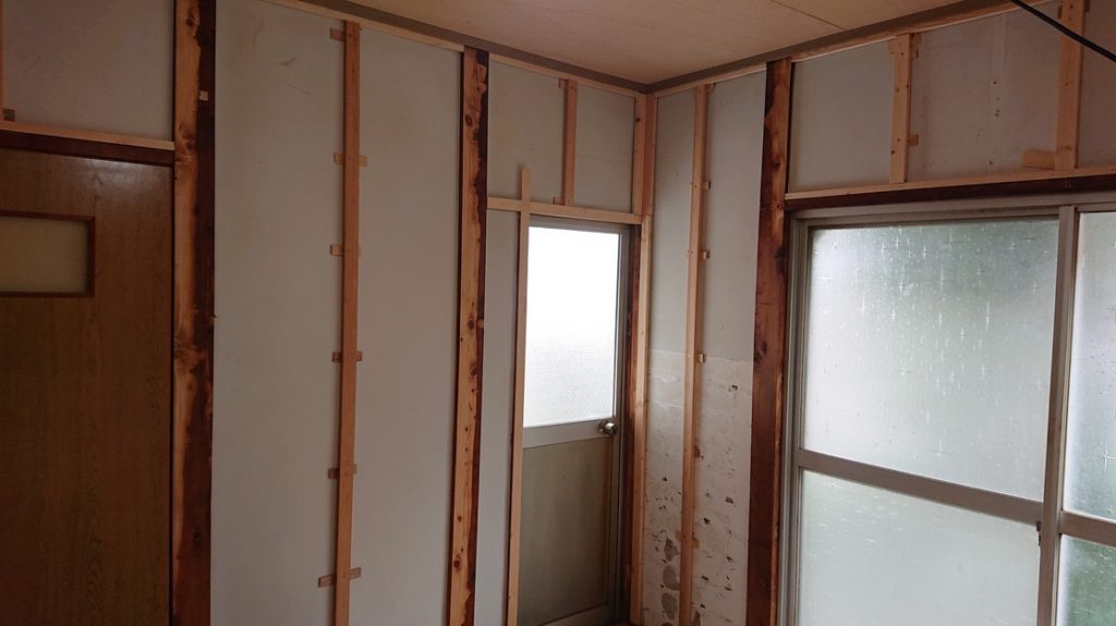壁は石膏ボードを貼るために下地作り。