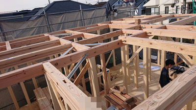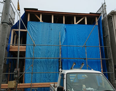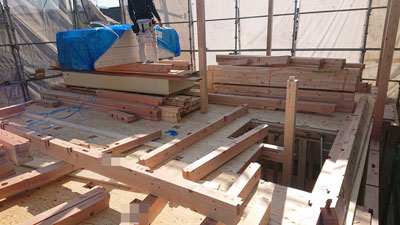 棟上げをして、外部のみを完成させるという変則的な工程です。