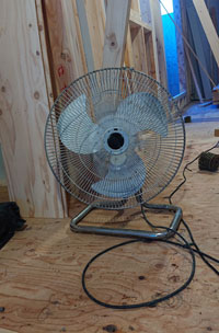 こちらの扇風機、現場に業務用(?)扇風機を
