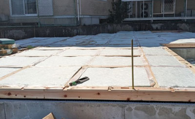 土台を敷いて断熱材を入れました。