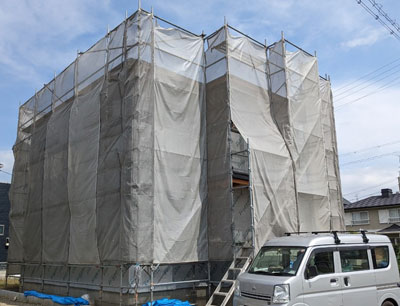 防水紙の施工が終わり戸締り、雨仕舞いが終わりました。