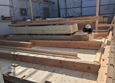 10時には二階床下地合板を施工して