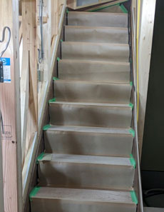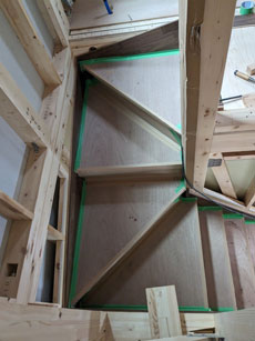 曲がり階段は段板を仕込むのに手順を考えないと後で収まらない、