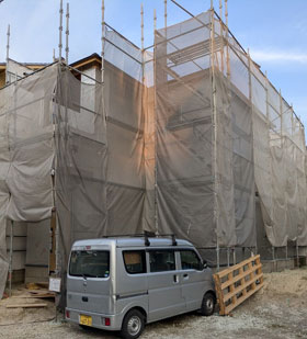 外部面材『あんしん』を貼りまして、