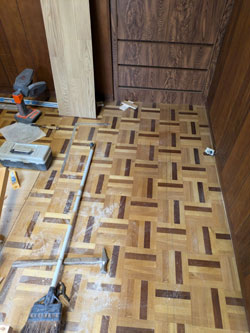 新しいフローリングを重ね貼りです。
