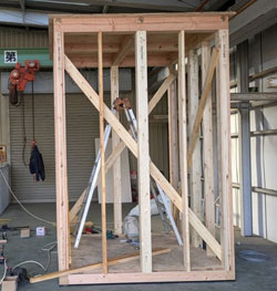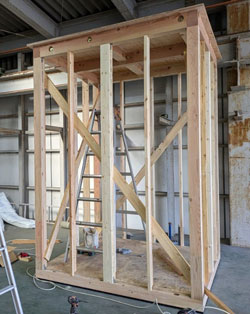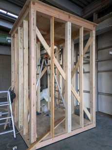 土台を据えて、柱を立て・・・建築方法は住宅と同じです。