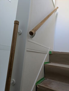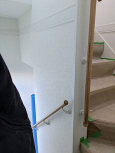 階段手すり、今回はお施主様の希望で内側取付です。