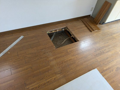 部分的に床に穴を開け、床下の高さを確認。
