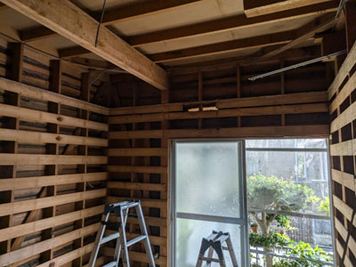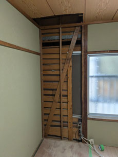 ↓、2階和室、壁一部解体