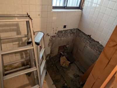 よくあるのはお風呂のドア周りの柱、敷居の腐りです。