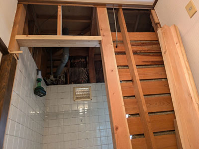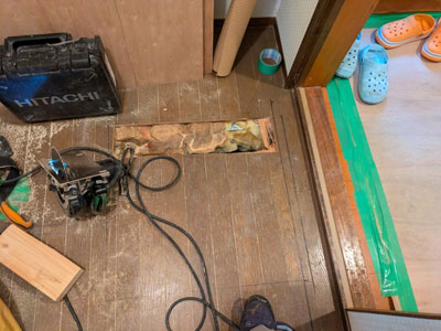 床下収納庫をつけるので小さめに切って骨組みの確認、