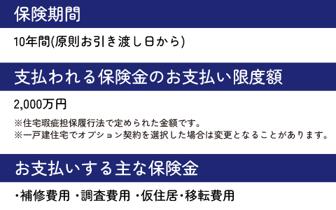 雨漏りや住宅の傾きなどの瑕疵(欠陥)の補修費用を10年間保険がサポート。