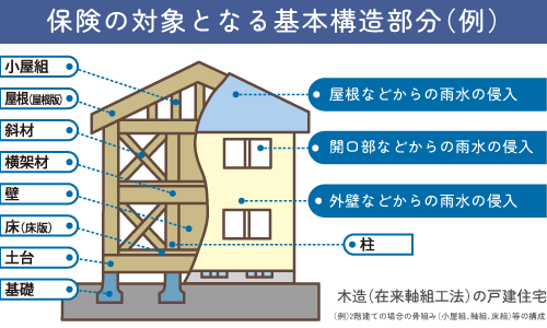 新築住宅のお引渡しから10年間、構造耐力上主要な部分と雨水の浸入を防止する部分に瑕疵(欠陥)が発見された場合、住宅事業者は無料で補修します。補修費用はまもりすまい保険がサポートしています。