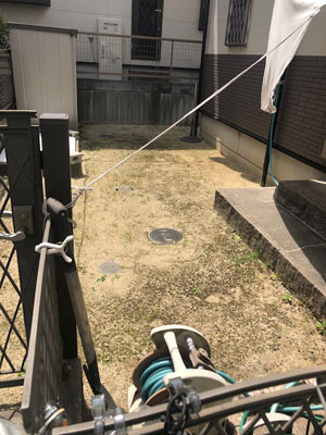 増築予定箇所にある既設排水管と掃き出し窓の下の