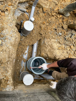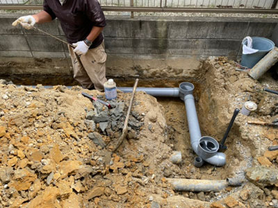 水道排水管は増築部分を避けながら配管を施工。