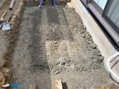 その後、砕石を敷き、転圧機でしっかりを締固めた上に