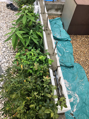 既設ブロックの上に新しくブロックを積むため、