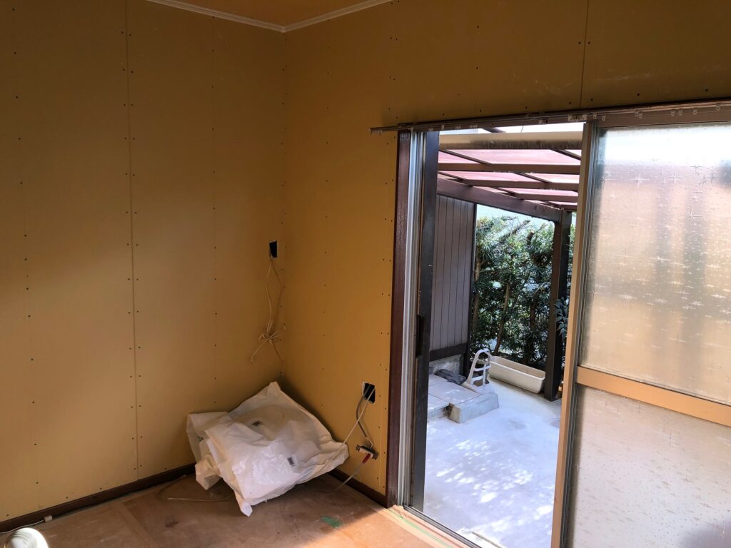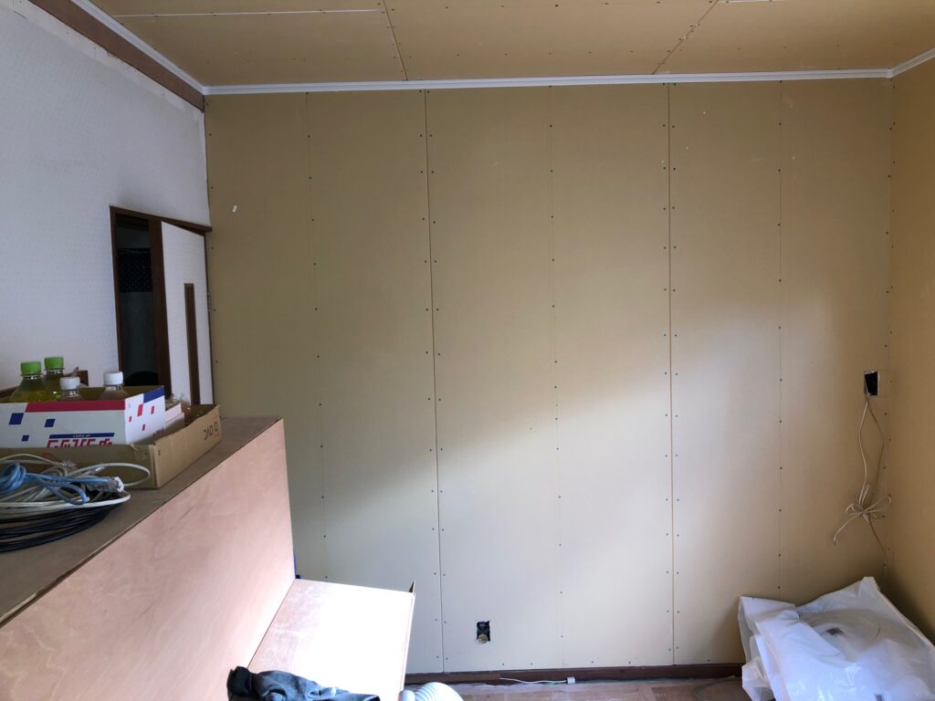 内壁下地材のボードを取り付け壁の復旧が完了しました。